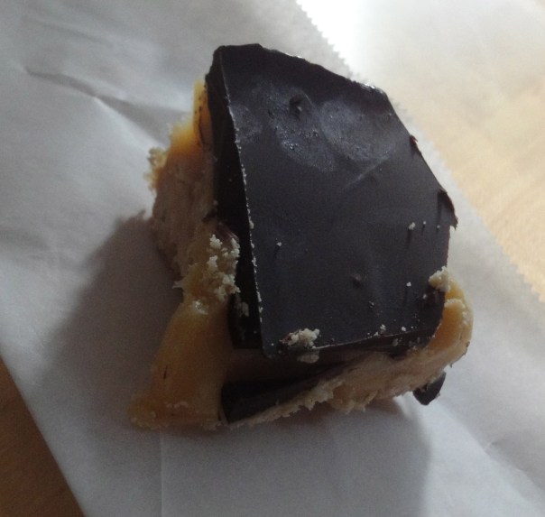 Okay, so maybe the photo doesn’t show it for the general awesomeness that it is and it looks a lot like an ordinary peanut butter square, but make no mistake. This is Millionaire’s Shortbread, a rich confection that layers dark chocolate atop gooey caramel spread over buttery shortbread. A Twix Bar-like dessert done on a big scale. I’m not sure where this gorgeous creature got its name but it is a British classic and rightly so.