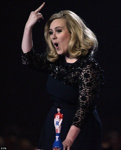 Congrats to Adele for winning two BRIT Awards Tuesday night and boldly flipping the bird, when her acceptance speech was preemptively cut short.