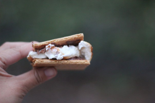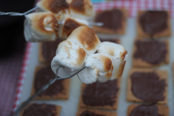 The marshmallows were toasted over the open fire, as usual and then added atop the Nutella-topped graham crackers.
