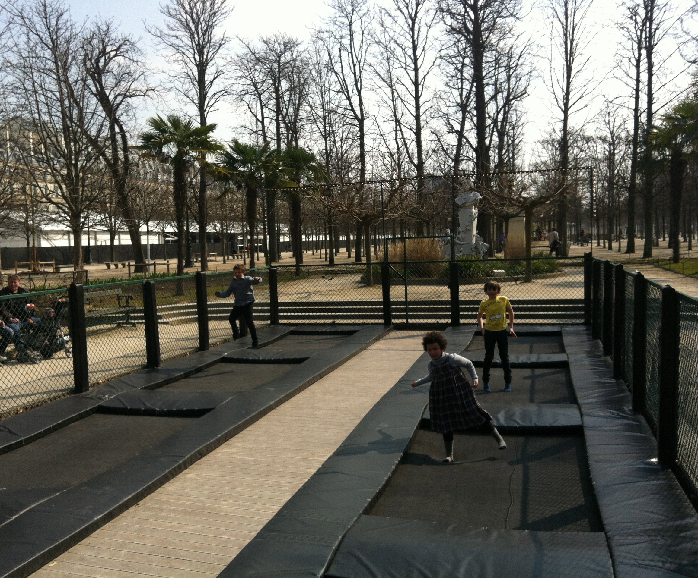 8. Bouncing mattresses. There are trampolines in the Jardin des Tuileries and they are fantastic. For a small price, each child gets an individual trampoline to use for a set amount of time!