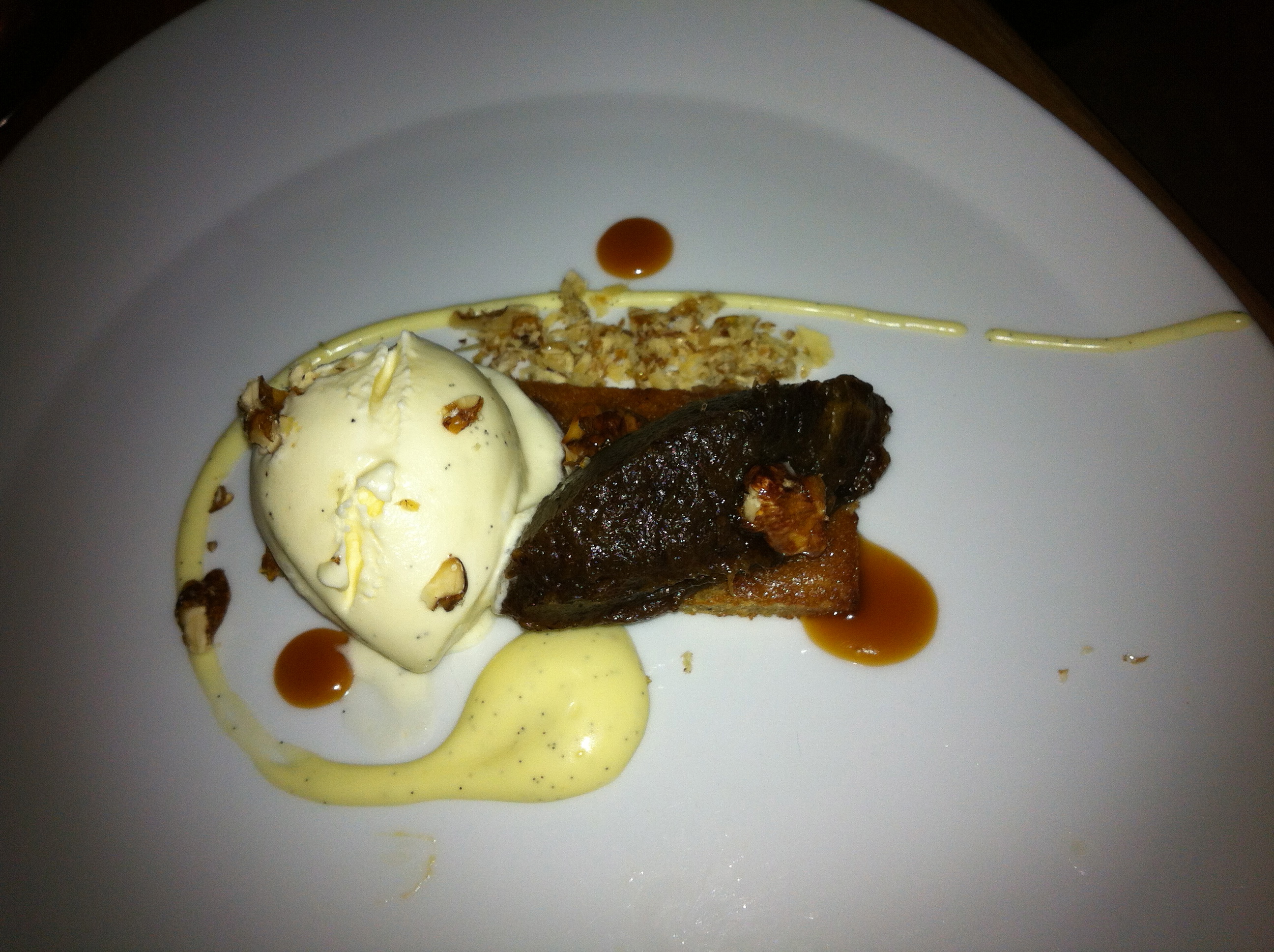 He ordered the warm toffee sponge, date, candied walnuts and vanilla ice cream, along with coffee.