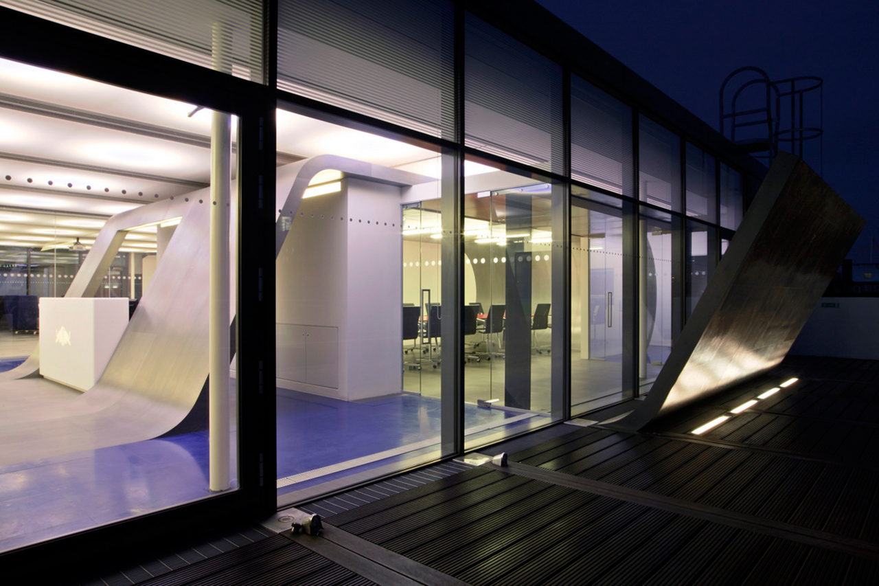 Check out Red Bull’s London headquarters, which has been recently refurbished. New offices comprise the top three floors of an existing 19th century building – including a rooftop extension. The top floor also includes a main reception, bar, café, and both informal and formal meeting areas. Looks like a pretty cool place to work!