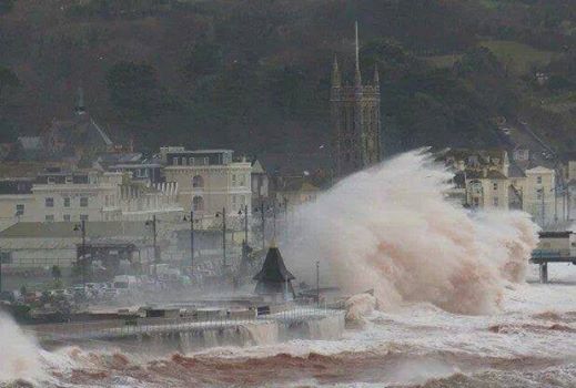 What in the world is going on? I’m still trying to get over Devon images like this. Waves hitting our favorite quiet seaside Devon town of Teignmouth: