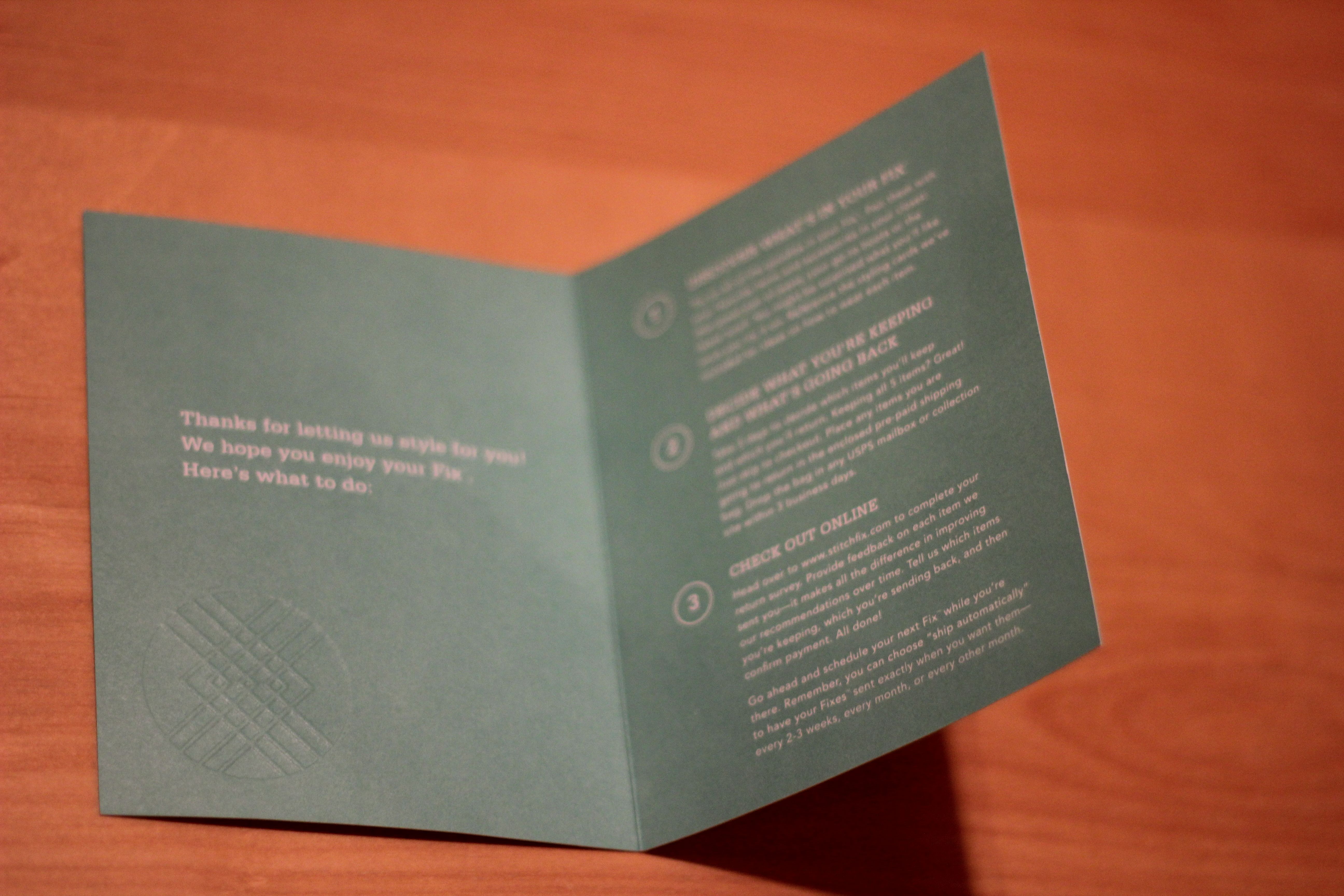 It also came with a note explaining next steps – how to return what I didn’t like (in a pre-paid postage envelope) and pay for what I did in three days.