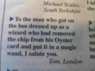 For the uninitiated, oyster cards are travel cards for the London Tube and there is a little chip in them so you can just tap them over the card reader instead of sliding your card through. Or indeed, attach them to a wand and tap away!