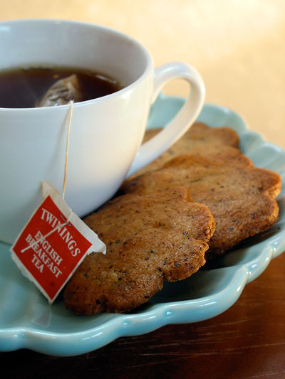 Ah, tea and biscuits! A sight for sore eyes! I'm not sure what kind of biscuits these are. Lemon poppyseed, perhaps?